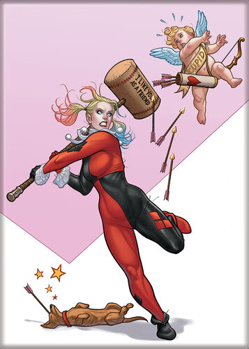 This is a licensed 2.5″ x 3.5″ magnet featuring a comic art image of DC Comics Harley Quinn. It is new and unused and stored in a smoke and pet free environment.