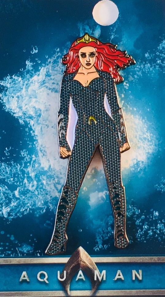This mint, unused 2″ tall licensed enamel metal pin features the standing figure of Mera as seen in the Aquaman movie from DC Comics. This is a mint, never used licensed pin that comes in a s sealed package with a header card, found usually at sci-fi and comic conventions. It has been stored in a smoke and pet free environment.