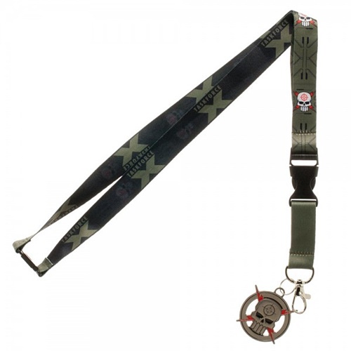 Produced by Bio World this is an 18″ long black and green, cloth and plastic lanyard with the Taskforce X name and logo from DC Comics Suicide Squad. There is also a figure charm of the Taskforce X skull logo on the end of the lanyard. It can be used to hold keys, name tags, and more. This is a mint, unused lanyard stored in a smoke and pet free environment.