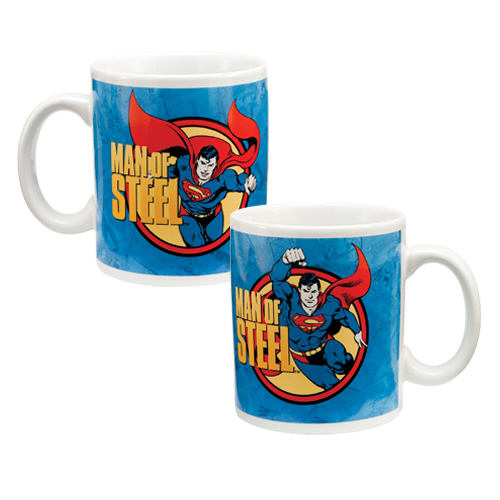 This is a new and unused stoneware ceramic coffee mug featuring the flying figure of Superman on each side. This mug has a photo quality design and measures 4.75″ x 3.25″ x 3.75″, microwave and dishwasher safe. It ships in a full color gift box and is stored in a smoke and pet free environment.