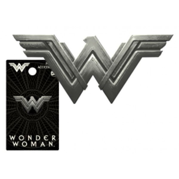 Produced by Monogram this is a licensed 1.125″ wide, dark grey metal pewter lapel pin of the new WW logo of Wonder Woman as seen in her movies. This is a new unused logo pin still in its original packaging stored in a smoke and pet free environment.
