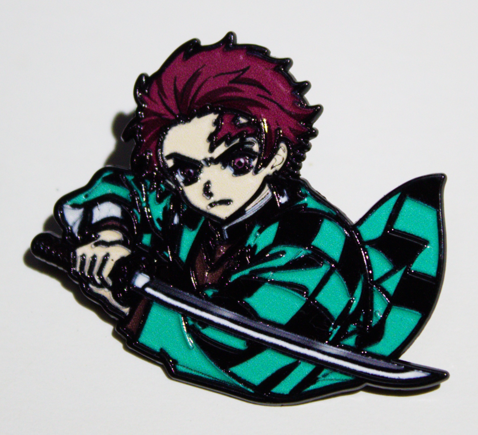 This is a 1.375″ tall x 1.625″ wide metal enamel pin featuring the image of Tanjiro Kamado holding his sword / katana ready to fight from the popular Japanese anime series Demon Slayer. This beautiful pin is in mint, unused condition stored in a smoke and pet free environment.