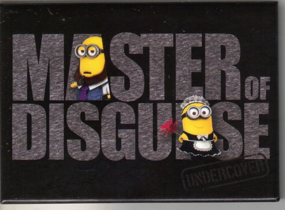 This is a licensed, large 2.5″ x 3.5″ magnet featuring the art image of minion Mark as the master of disguise from the cult hit movies Despicable Me.