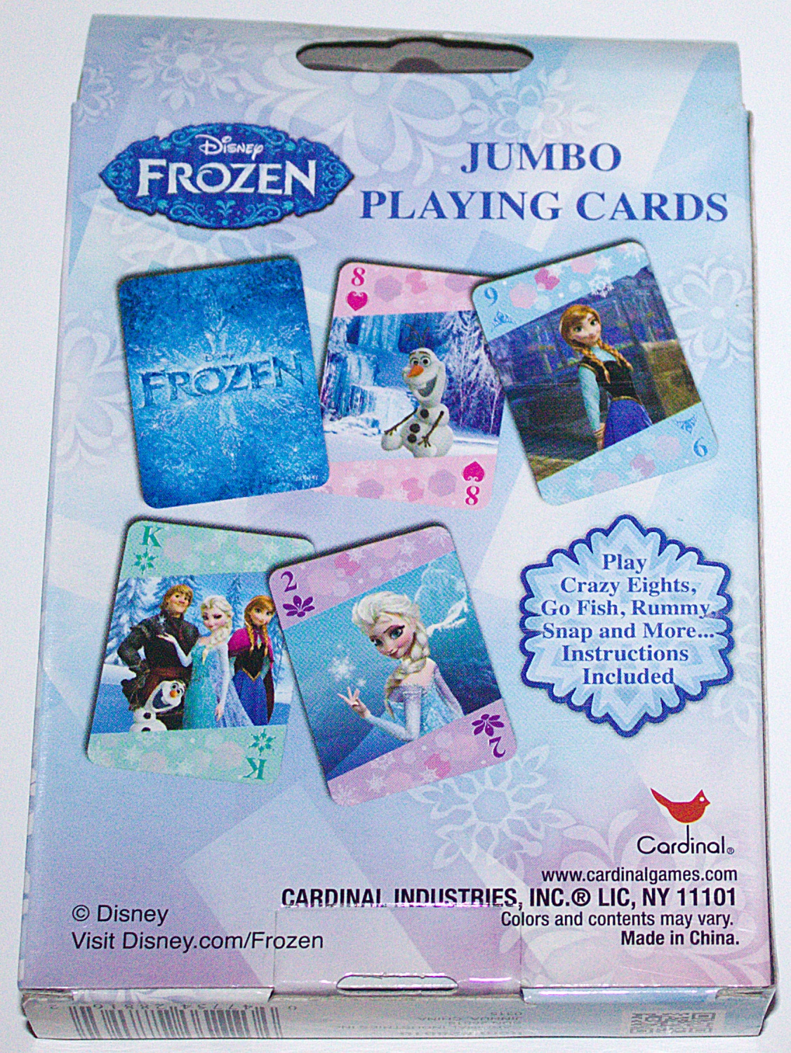 All of your favorite characters from Walt Disney’s Frozen movie can be found in the illustrated jumbo sized deck of playing cards; Every card has an image on it and it comes with rules for playing multiple types of card games. are featured in this deck of Despicable Me playing cards. This is a new, unused set stored in a smoke and pet free environment.