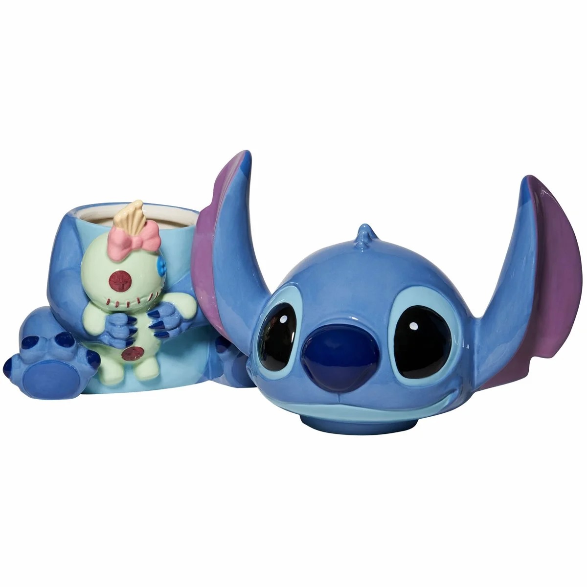 From the hit Walt Disney animated movie Lilo & Stitch comes the Stitch cookie jar. Stitch is holding Lilo’s disfigured doll and wears a smile with the knowledge that things don’t have to be pretty to be perfect. Much like your hand-frosted cookies, Stitch knows that sweetness is all about what’s inside, and he’ll keep your treats fresh. This high quality stoneware cookie jar is the perfect addition to any Disney lover’s home. It is a 11″ tall x 10.5″ x 7.5″ dolomite cookie jar featuring the figure of Stitch on the removable lid. Hand wash only. This is not dishwasher or microwave safe. It is new and unused, ships in an illustrated box and is stored in a smoke and pet free environment.