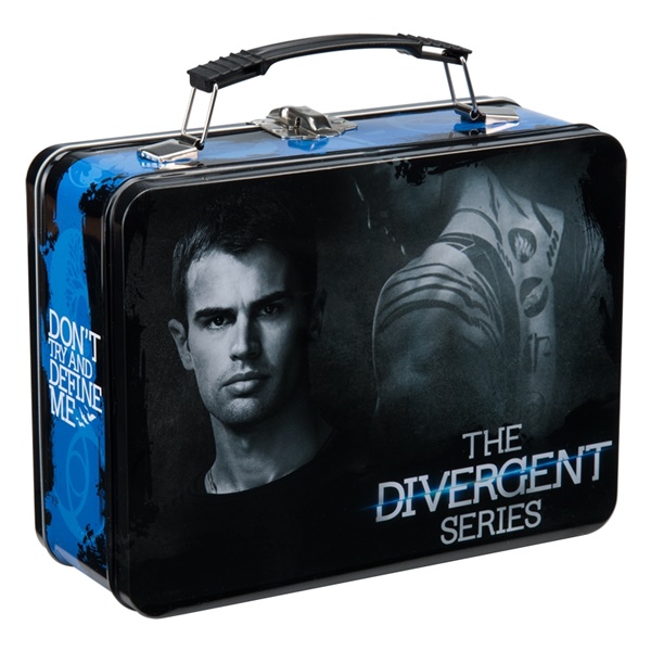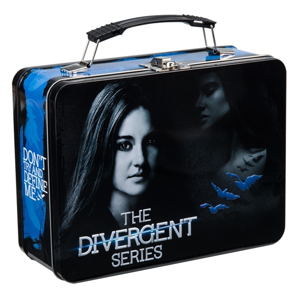 Produced in 2016, this is a two sided 9″ long x 3.5″ wide x 7.5″ tall metal carry all tin tote or lunchbox featuring the name logo and photo images on each side from the popular sci-fi Divergent movie series This is a new, unused tin tote/lunchbox with a collapsible plastic handle and metal latch closure stored in a smoke and pet free environment.