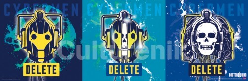 Printed in 2011 by Culturenik, this horizontal poster depicts the Doctor’s enemy the Cybermen, showing the skull inside their helmet, as seen on the long-running and highly popular British science fiction TV series Doctor Who. This poster is a new, unused copy that comes rolled and is shipped in a protective tube. It has been stored in a smoke and pet free environment.