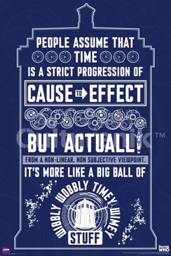 Printed in 2014 by Culturenik, this 24″ x 36″ poster depicts the Doctor’s wibbly wobbly time explanation over the Tardis, as seen on the long-running and highly popular British science fiction TV series Doctor Who. This poster is a new, unused copy, stored in a smoke and pet free environment, that comes rolled and is shipped in a protective tube.