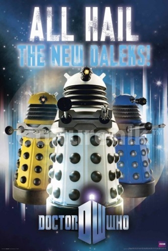 Printed in 2014 by Culturenik, this poster depicts Daleks with the words “All Hail The New Daleks” from the long-running and highly popular British science fiction TV series Doctor Who. The Culturenik imprint over the middle of the poster is only in our image and not on the poster you will receive. This poster is a new, unused copy that comes rolled and is shipped in a protective tube. It has been stored in a smoke and pet free environment.