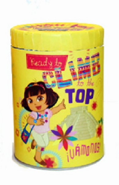 Dora the Explorer Large Round Yellow Illustrated Tin Coin Bank Style B UNUSED
