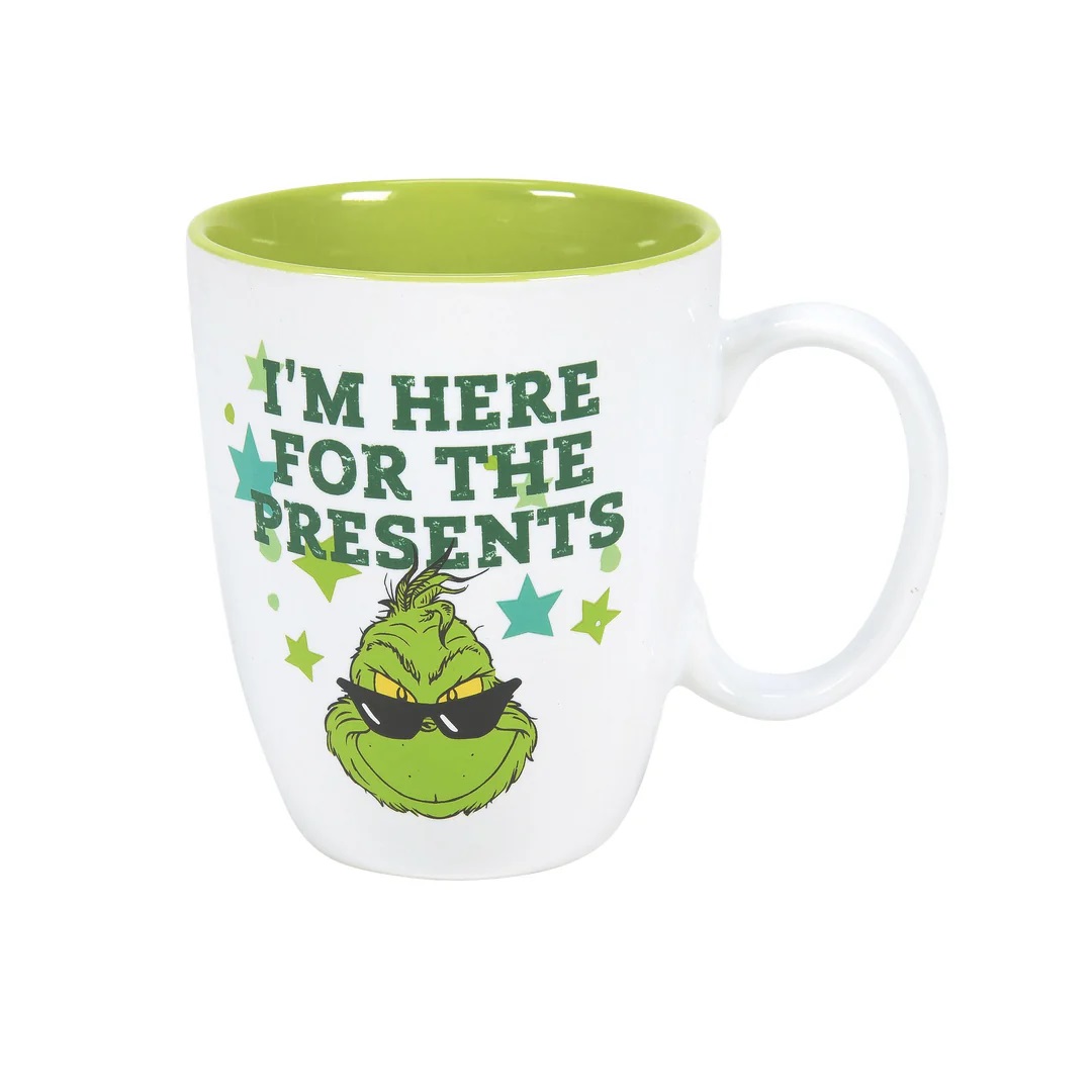 Dr. Seuss Christmas Grinch I’m Here For the Presents 12 oz Ceramic Mug NEW BOXED