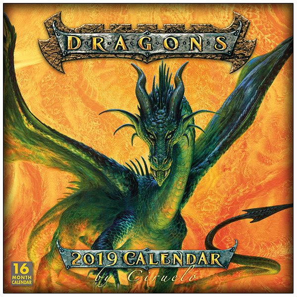 This is the 2019, 16 month wall calendar with images of fantasy art paintings of Dragons. Ciruelo Cabral reigns supreme in the world of fantasy art. Known simply as Ciruelo, he is an accomplished painter whose consummate skills have brought the dragon back into the limelight. The myths and mysteries surrounding the dragon have captivated people for centuries. The spellbinding renditions in this calendar may well make you a believer in the legendary creature. This is a mint, unused, original shrink wrap copy, printed by Sellers Publishing and stored in a smoke and pet free environment.