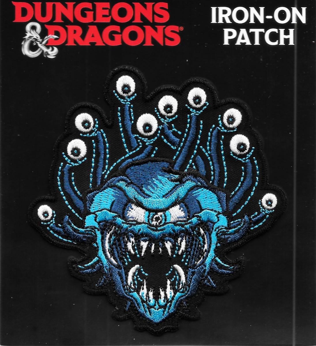 This is an embroidered patch measuring 3.75″ high x 3.625″ wide featuring the image of a Beholder, the sphere of many eyes monster, from the Dungeons & Dragons role playing game. Produced by Ata-Boy, it is stored in a smoke and pet free environment and comes with an adhesive glue backing for easy application to a cloth surface.