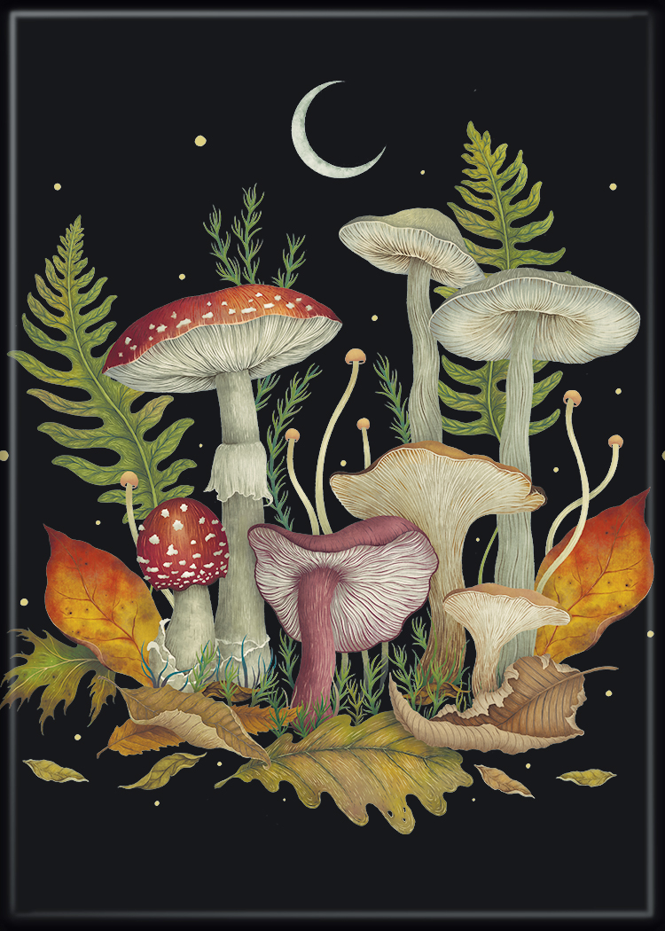 Episodic Drawing Lea Yunk Art Autumn Mushrooms Refrigerator Magnet NEW UNUSED