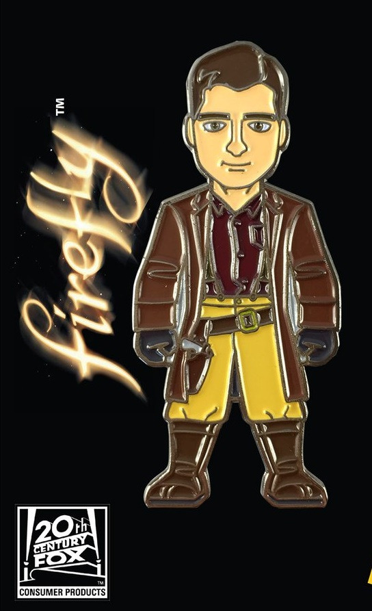 This is a mint, unused licensed metal enamel lapel pin that features a 2″ tall image of Malcolm Reymolds from the cult Firefly TV series and Serenity movie. It comes in a sealed package with a header card and it is stored in a smoke and pet free environment.