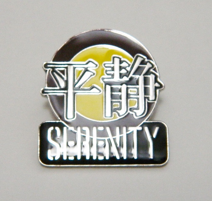 This is a 1″ wide, new and unused enamel pin featuring the Serenity name and logo from the cult sci-fi TV series Firefly, the basis for the hit movie Serenity. This pin is new, unused, and has been stored in a smoke and pet free environment.