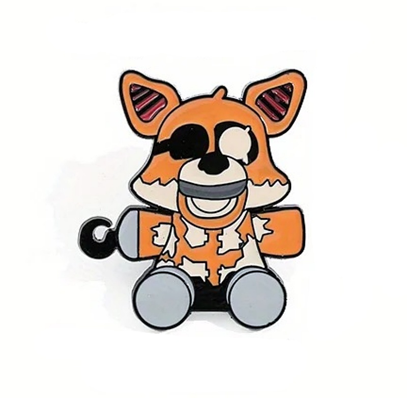 This is a 1.25″ wide x 1.375″ high metal enamel pin featuring Pirate Foxy from the popular video game Five Nights At Freddy’s. It is new and unused and is stored in a smoke and pet free environment.