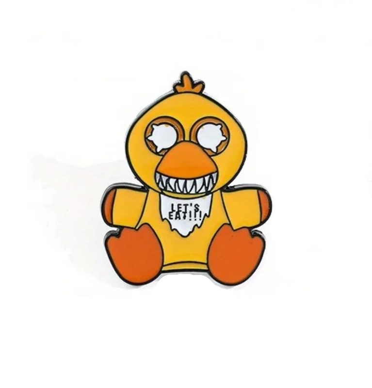 This is a 1″ wide x 1.125″ high metal enamel pin featuring Possessed Chica from the popular video game Five Nights At Freddy’s. It is new and unused and is stored in a smoke and pet free environment.