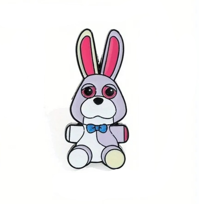 This is a .75″ wide x 1.625″ high metal enamel pin featuring Toy Bonnie from the popular video game Five Nights At Freddy’s. It is new and unused and is stored in a smoke and pet free environment.