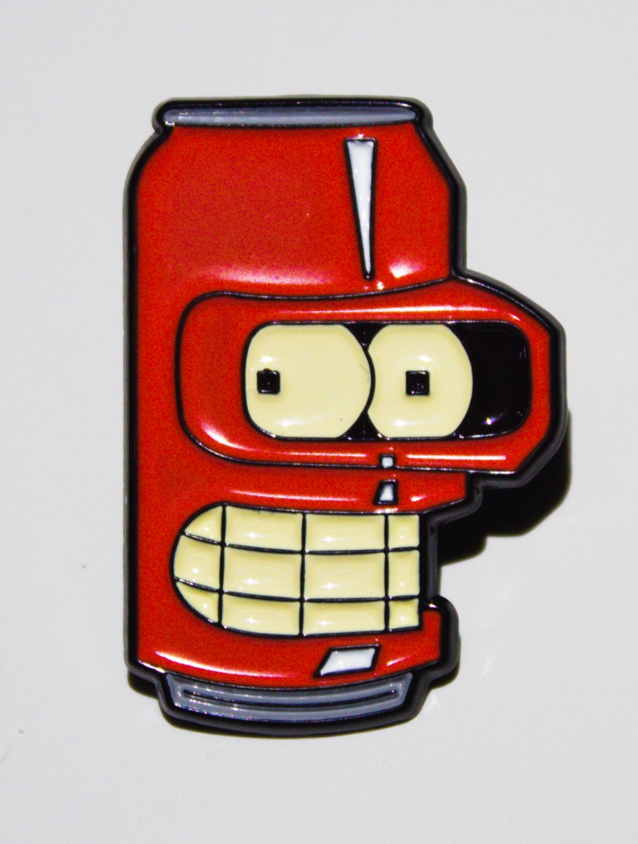 This is a 1.125″ high x .875″ wide metal enamel lapel pin which depicts the image of a Bender-Cola can as seen on the hit animated TV series Futurama. This is a new, unused pin stored in a smoke and pet free environment.