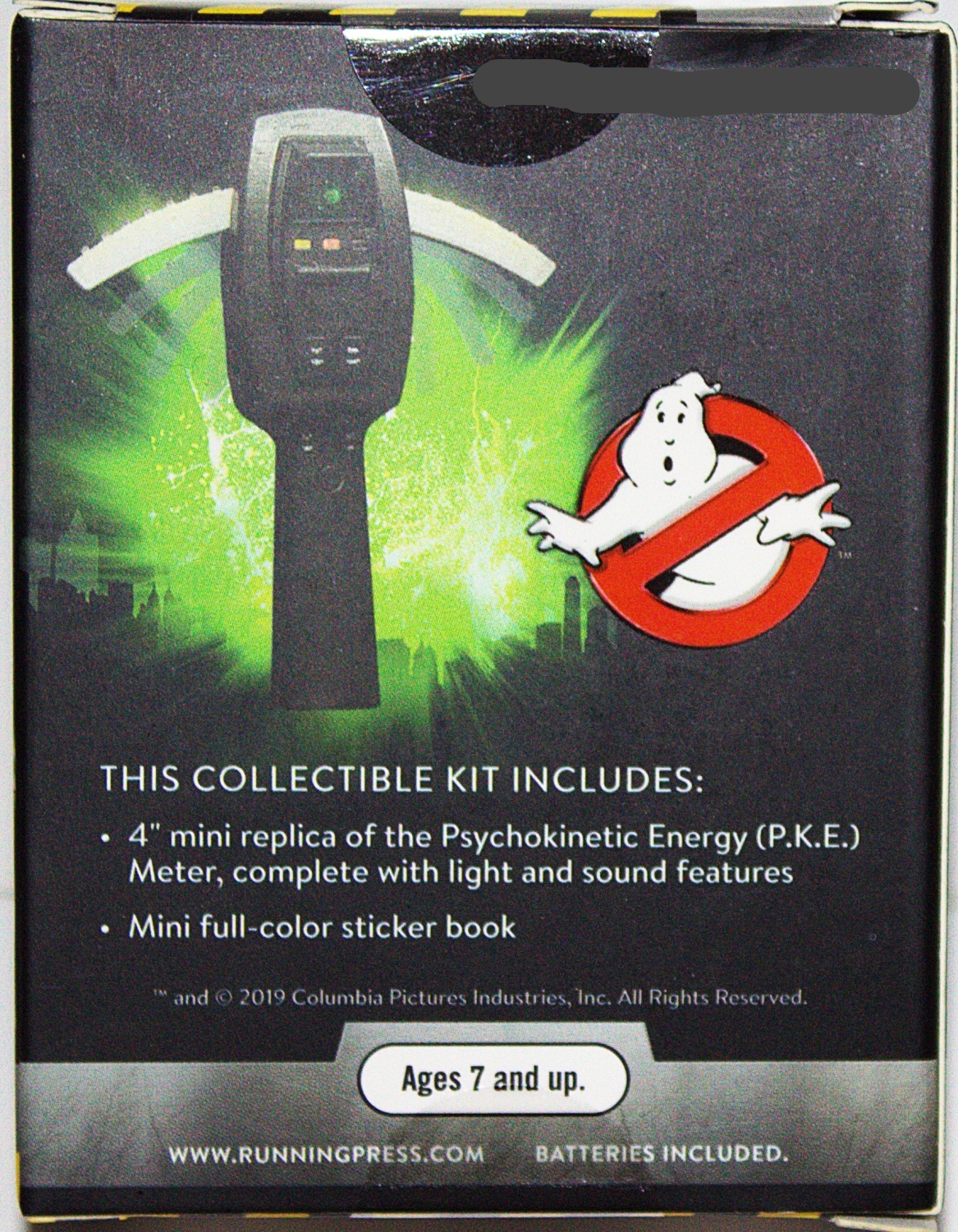 This is one of a series of mini books about Ghostbusters that comes with a Ghostbusters toy, model or special effect. This officially-licensed kit includes a mini replica of the Psychokinetic Energy (P.K.E. Meter) from the 1984 classic film, Ghostbusters! The set includes: a 4” mini P.K.E. meter with sensor wings that spring open at the push of a button with 2 light modes consisting of multi colored LEDs + light illuminating along wings. It features authentic detecting sound. In addition it comes with Mini book that contains 8 full-color stickers. This is a new, sealed copy that we purchased direct from the publisher and it has been stored in a smoke and pet free environment.