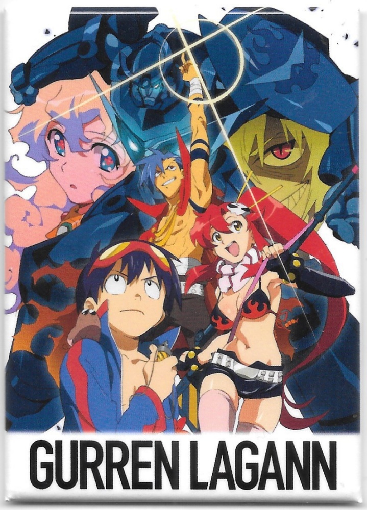 This is a licensed 2.5″ x 3.5″ magnet featuring art images from the Japanese anime series Gurren Lagann. It is new and unused and stored in a smoke and pet free environment.