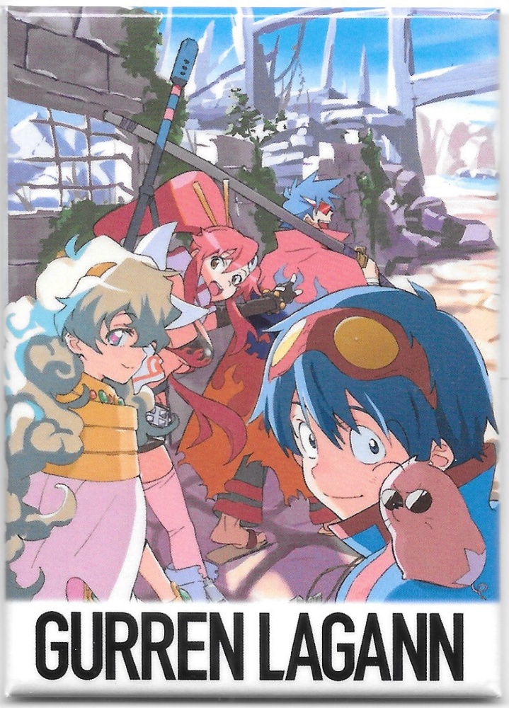 This is a licensed 2.5″ x 3.5″ magnet featuring art images from the Japanese anime series Gurren Lagann. It is new and unused and stored in a smoke and pet free environment.