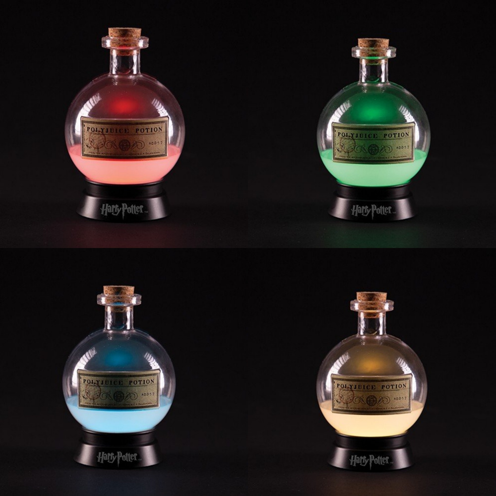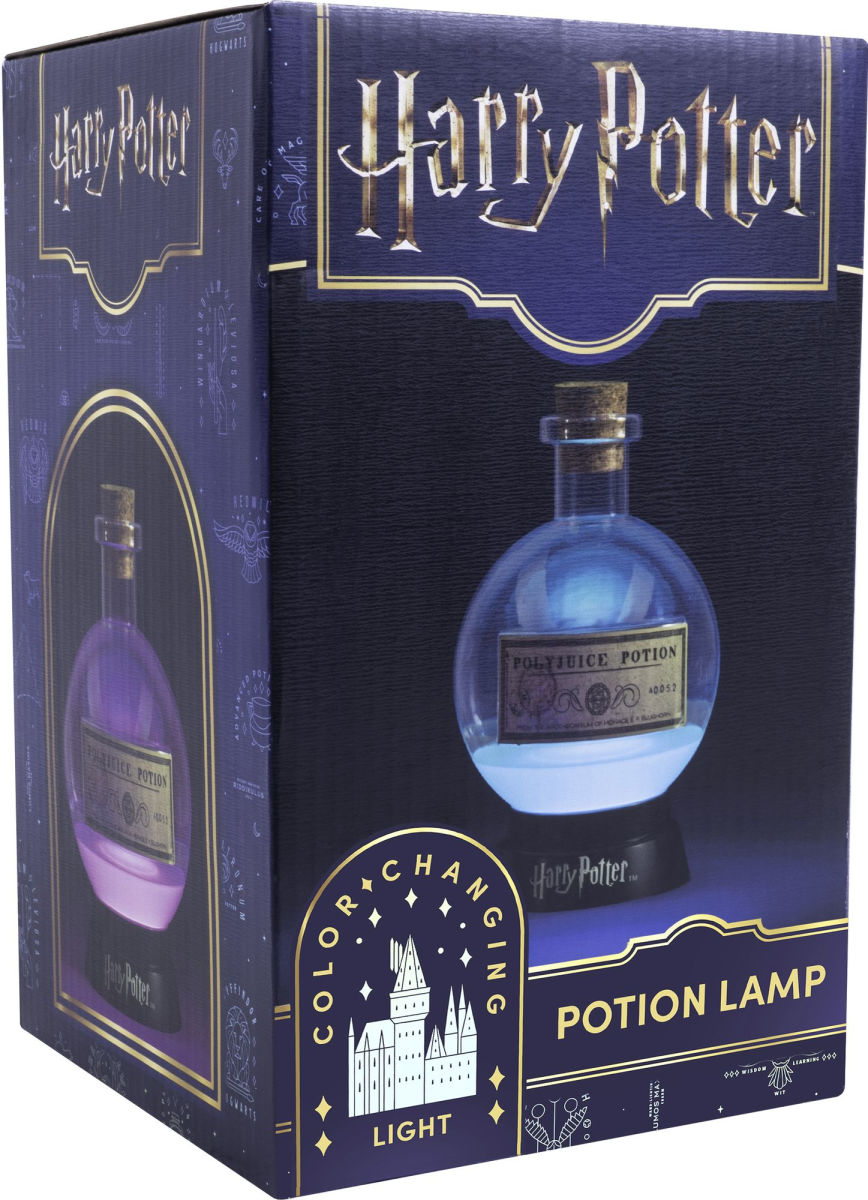 Step into the enchanting world of Harry Potter with this officially licensed Large Polyjuice Potion Lamp. Designed to capture the essence of wizardry, this lamp adds a magical touch to any fan’s collection. Its unique design and color-changing LED feature make it a standout piece for any Harry Potter enthusiast. Perfect for displaying in your home, office, or as part of your Halloween decorations. Mesmerizing Color-Changing LED Light: Experience a spectrum of mesmerizing tones as the lamp seamlessly shifts between orange, green, shades of blue, purple, yellow, red, and pink. This dynamic lighting effect creates a captivating ambiance, making it ideal for setting a magical mood during movie nights, parties, or quiet evenings at home. The soft, ambient glow adds a cozy and mystical atmosphere to any room. Powered by 3 AAA batteries (not included), this lamp offers portability and convenience – no cords or outlets required. This is the large version measuriing 5.24″ x 5.24″ x 8.58″ high. It is new and unused, sealed in its original packaging and stored in a smoke and pet free environment.