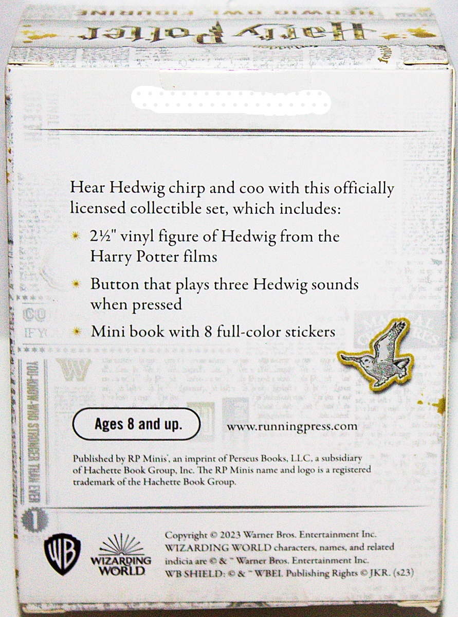Hear Hedwig chirp and coo with this officially licensed miniature figurine of Harry Potter’s beloved snowy owl. It is a 2.5-inch vinyl figure of Hedwig with a button that plays Hedwig’s sounds from the Harry Potter films. In addition you get a mini sticker book that includes 8 full-color stickers. A unique and keepsake item for all fans of Harry Potter. This is a new, sealed copy that we purchased direct from the publisher and it has been stored in a smoke and pet free environment.