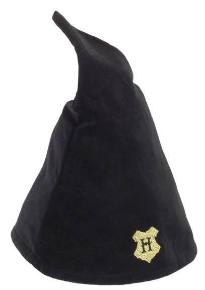 This is a velvet like fabric hat which features the Hogwarts School crest embroidered on the side, as seen in the Harry Potter movies. It has a foam lining for stability. This is a new, unworn hat produced by Elope stilled sealed in its original bag with tags attached. It has been stored in a smoke and pet free environment.