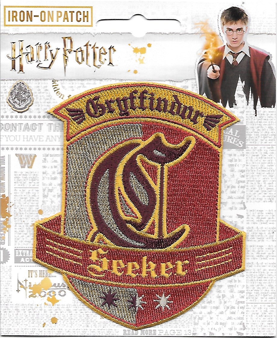 This mint, unused 4″ high x 3.5″ wide embroidered licensed patch features the seeker logo crest of the House of Gryffindor at the magical school of Hogwarts, as depicted in the books and seen in the Harry Potter movies. It has a glue backing for easy application to hats, shirts, jackets and bags and is stored in a smoke and pet free environment.