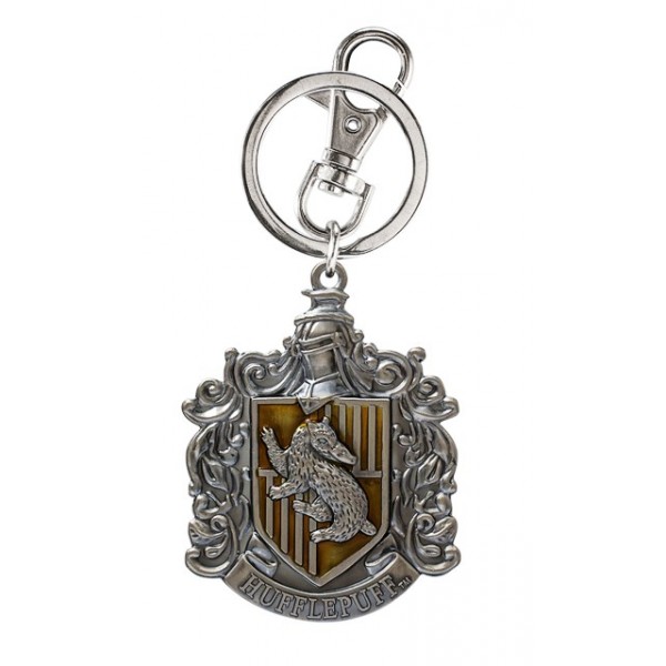 This is a 2.25″ high colored metal pewter key chain/key ring features the House of Hufflepuff crest logo from the Hogwarts School of Witchcraft and Wizardry as depicted in the books and seen in the Harry Potter movies. This is a mint, unused key chain/key ring stored in a smoke and pet free environment.