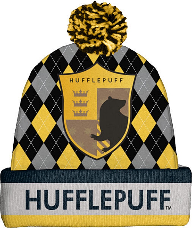 Conjure the magic of snowy days at HOGWARTS castle with this Hufflepuff knitted pom beanie. Inspired by the HARRY POTTER films and designed to keep you warm on outings, this pom beanie hat is made of super soft acrylic yarn in gold, grey and black. The colorful printed patch on the front of the hat details the Hufflepuff crest. You’ll make some magic with this Harry Potter Pom Beanie, stored in a smoke and pet free environment.
