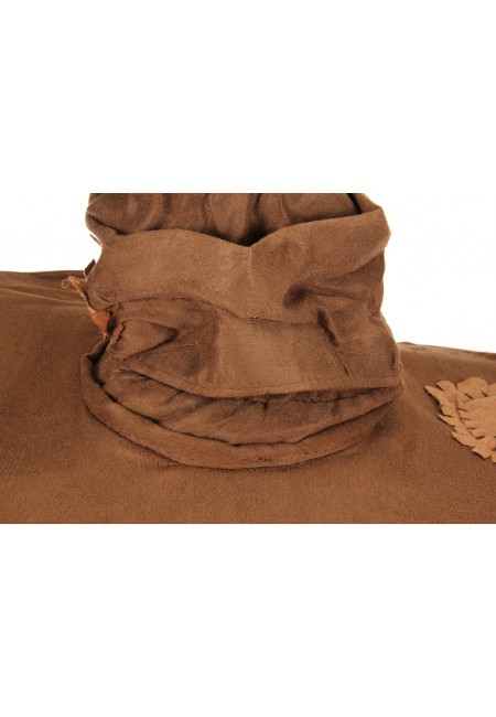 This is a soft suede material hat which is a reproduction of the Hogwarts School sorting hat, as seen in the Harry Potter movies. It has a foam lining for stability, and a wired brim for shape, and a velcro and elastic strap to adjust the head size. It can be operated like a puppet with a movable mouth, and it has a hidden compartment as well. This is a new, unworn licensed hat produced by Elope. It has been stored in a smoke and pet free environment.