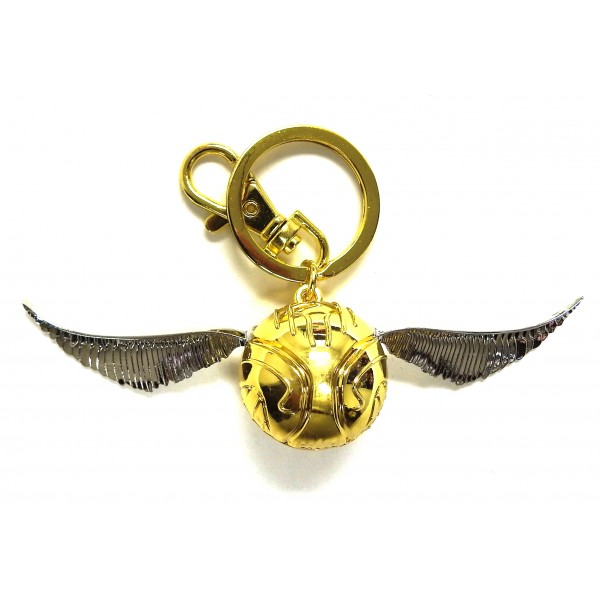 Produced in 2016 is this 5″ wide colored metal pewter keychain/keyring that features the golden Snitch from the game of Quidditch as seen in the Harry Potter movies and depicted in the books. This is a mint, unused keychain/keyring stored in a smoke and pet free environment.