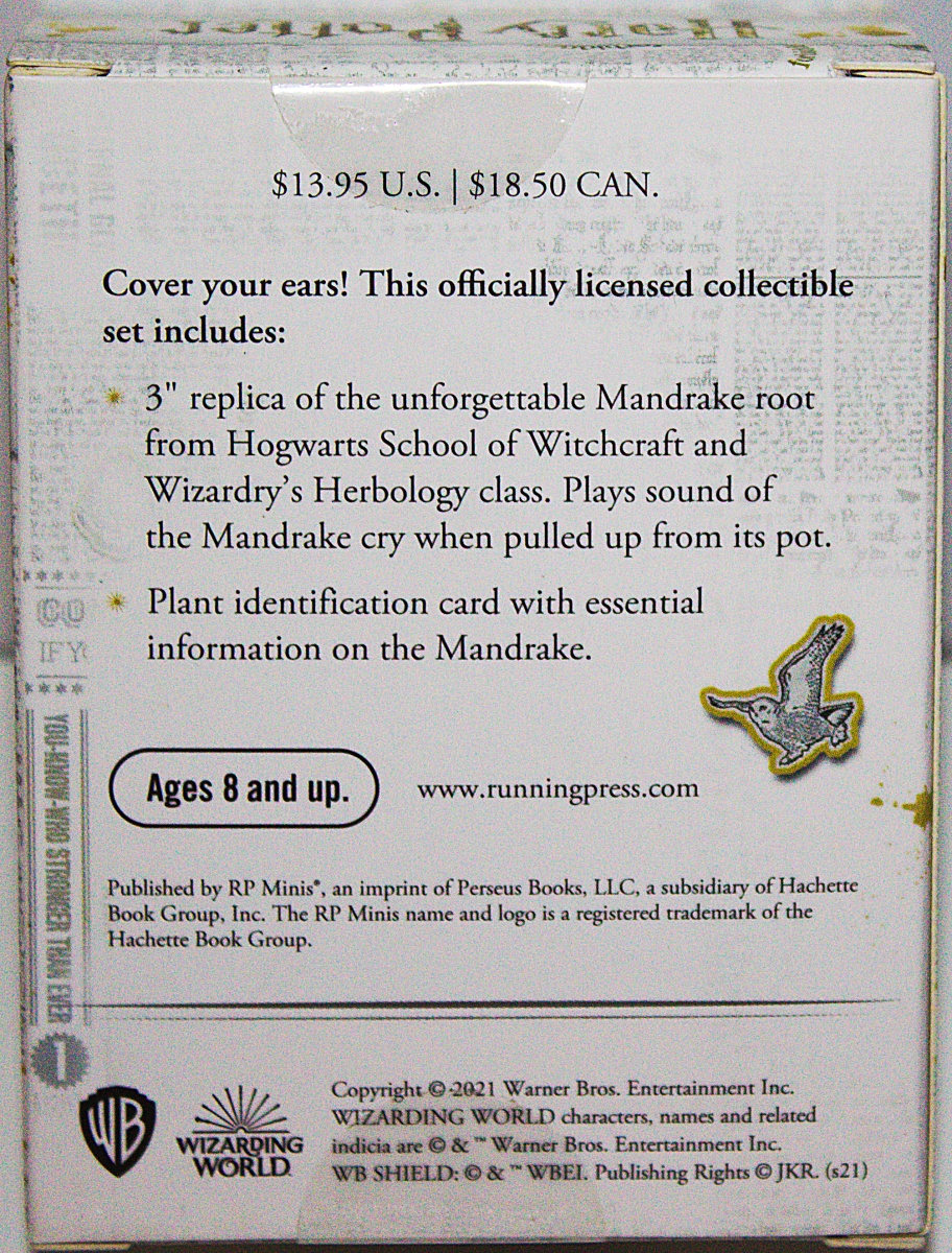 An officially licensed collectible replica of the unforgettable mandrake root from Hogwarts School of Witchcraft and Wizardry’s herbology class. Complete with sound of the plant’s cry, this is a perfect gift for fans of the Wizarding World. This mini replica of the mandrake potted plant plays audio of the mandrake cry when pulled up from the pot and measures 3 inches. This includes the mandrake cry as heard in Harry Potter and the Chamber of Secrets. Identification Card Included: An illustrated description card provides essential information on the mandrake. This is a new, sealed copy that we purchased direct from the publisher and it has been stored in a smoke and pet free environment.