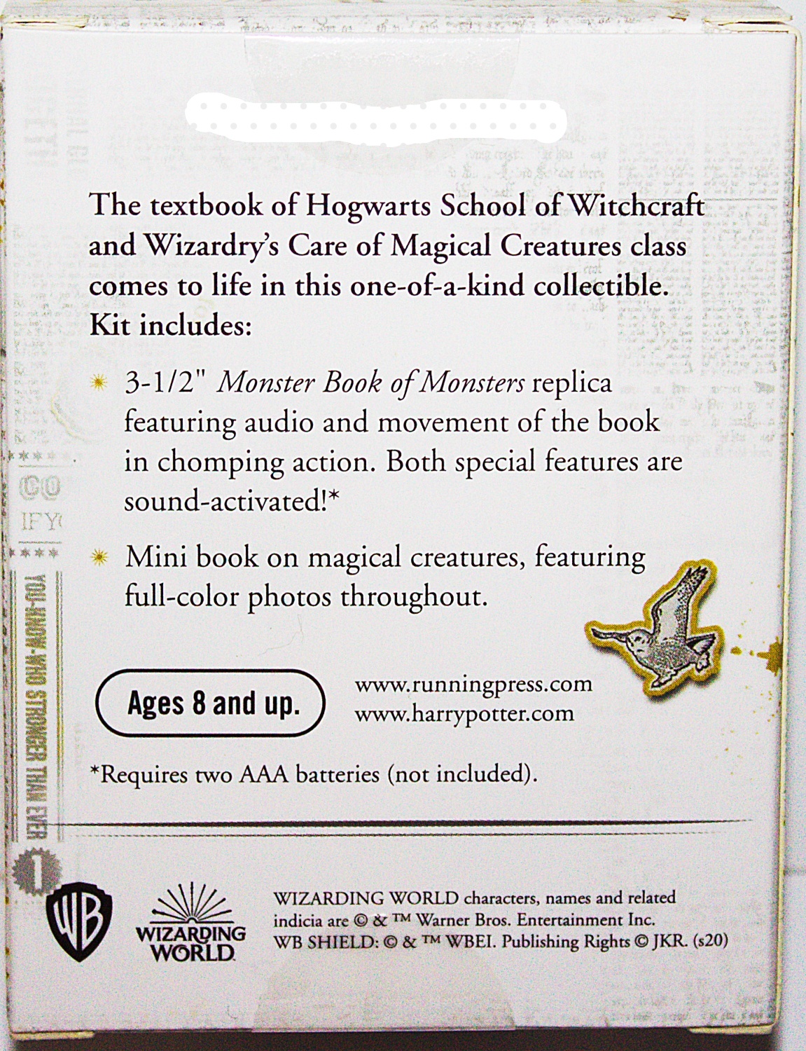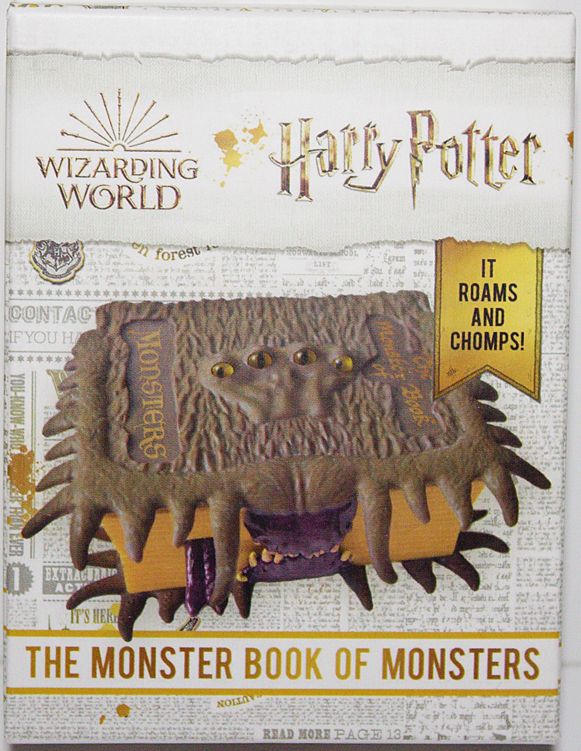 This is one of a series of mini books about Harry Potter that comes with a Harry Potter toy, model or special effect. The textbook of Hogwarts School of Witchcraft and Wizardry’s Care of Magical Creatures class comes to life in this one-of-a-kind collectible featuring the sound and movement of the famous Monster Book of Monsters. The kit includes: 3.5″ Monster Book of Monsters replica featuring audio of the book in chomping action and movement. Both special features are sound-activated, prompted by a simple sound such as hand-clapping. Plus a 48-page book on magical creatures, featuring descriptions, quotes, and full-color illustrations and photos from the films throughout. This requires two AAA batteries (not included). This is a new, sealed copy that we purchased direct from the publisher and it has been stored in a smoke and pet free environment.