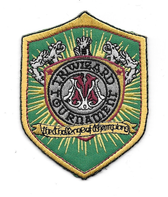 This mint, unused 4″ high embroidered patch features the shield logo of the famous Tri Wizard Tournament at the magic school of Hogwarts, as depicted in the books and seen in the Harry Potter movies. The bottom of the patch reads “The Challenge of Champions”. This has not been a widely distributed patch, found usually at sci-fi and comic conventions. It has been stored in a smoke and pet free environment and comes with a glue backing for easy application to a cloth surface.