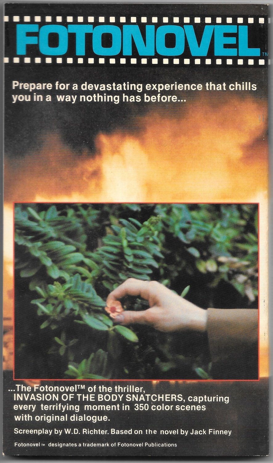 Published in 1979, this is a first printing of this full color photo paperback novel. It tells the complete story of the hit remake sci-fi film, Invasion of the Body Snatchers, starring Leonard Nimoy (Mr. Spock from Star Trek) in full color photos from the movie. It is a new, never read copy that we purchased at the time of publication. The photo is for identification but you will receive one as described. This has been stored in a smoke and pet free environment.