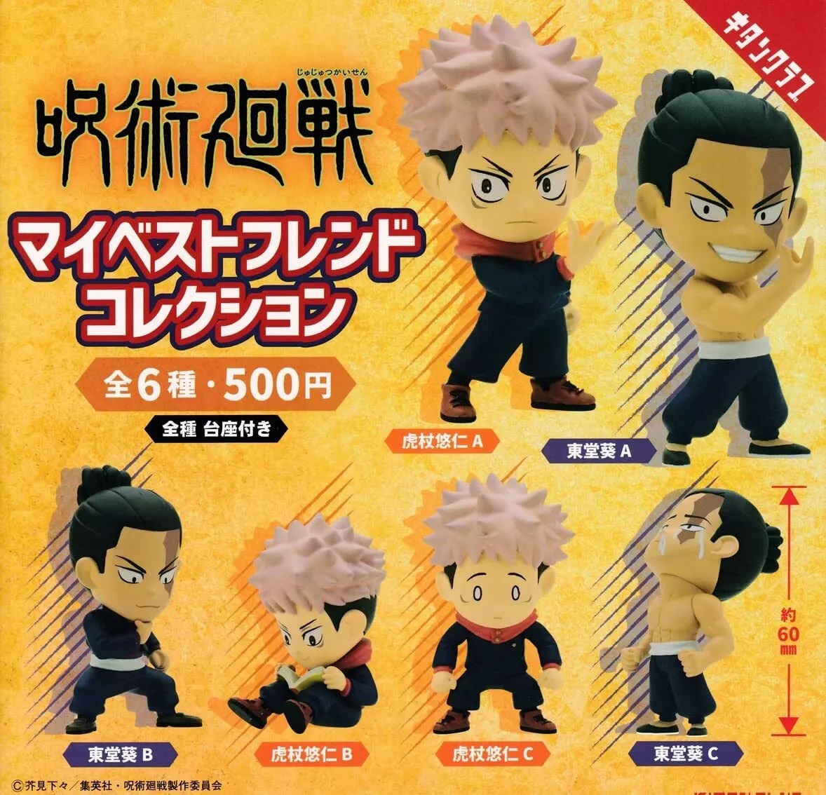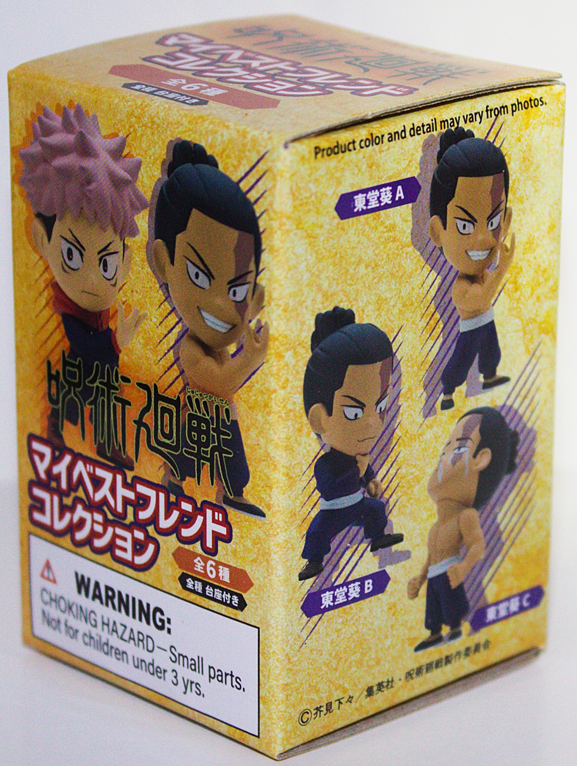 This is a single random sealed blind box that contains one of six possible figures from the Japanese anime series Jujutsu Kaisen. There are 3 versions each of Itadori Yuji and Toudou Aoiand. They range in height from 2.5″ to 2.75″ and have been stored in a smoke and pet free environment since we purchased them new rom the source.