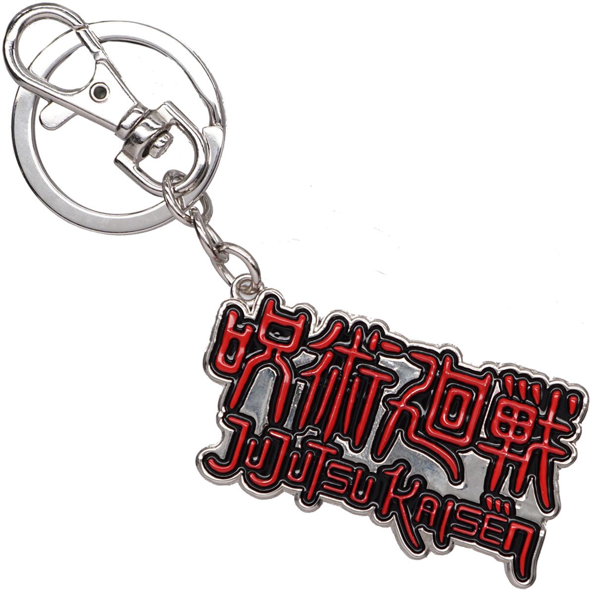 Produced by Monogram this 2.25″ wide x 1.25″ high pewter metal key ring/key chain is in the 3-D image of the name logo in English and Japanese for the anime Jujutsu Kaisen. This is a mint, unused key ring stored in a smoke and pet free environment.