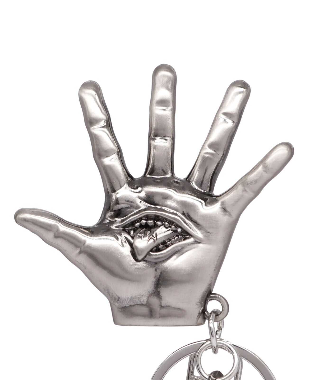 Produced by Monogram this 2.5″ wide x 2.5″ high pewter metal key ring/key chain is in the 3-D image of the Hand of Yuji Itadori as seen in the anime Jujutsu Kaisen. This is a mint, unused key ring stored in a smoke and pet free environment.