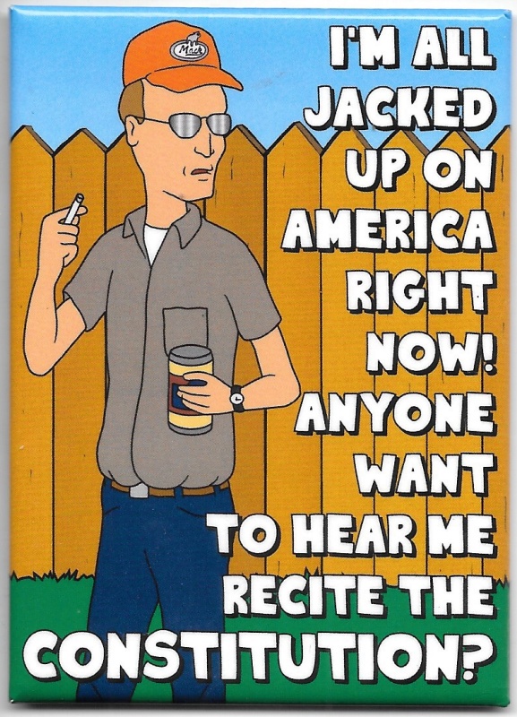 This is one of a series of refrigerator magnets featuring art images and phrases from the hit animated TV series King of the Hill. New and unused and measuring 3.5″ x 2.5″, it is stored in a smoke and pet free environment.