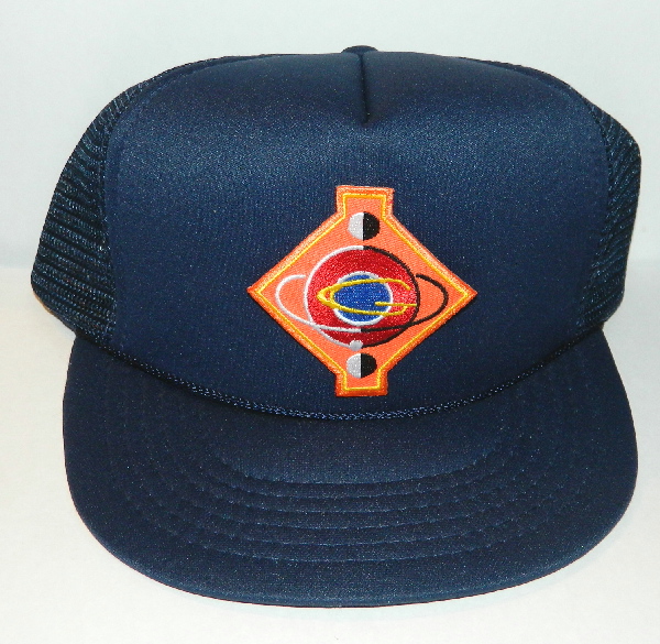 This is a BLUE cloth adjustable baseball style (meaning a round bill) hat (made of 65% polyester and 35% cotton) with a 100% polyester mesh back. It has a patch on the front featuring the logo of the Spindrift crew, as seen on their uniforms, on the cult hit sci-fi TV series, Land of the Giants. The photo is for identification of the hat style and the patch. The color of the hat WILL BE the one stated in the title and the description. This is a new, never worn hat stored in a smoke and pet free environment.
