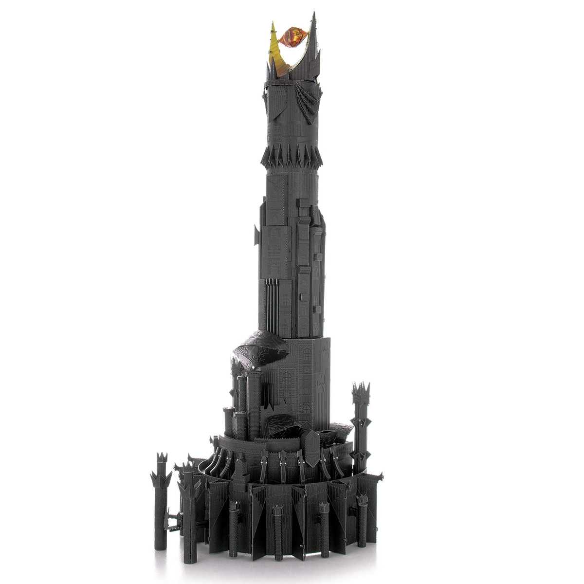 This amazingly detailed model starts as four 8.3″ x 4.3″ metal sheets and finishes as a 3-D model. It is approximately 2.1″ L x 2.1″ W x 9.25″ H when assembled and this one features the tower Barud-Dur, from the popular Lord of the Rings movies. Barad-dûr, also known as the Dark Tower, was the chief fortress of Sauron, on the Plateau of Gorgoroth in Mordor. Known in Black Speech as Lugbúrz, the Eye of Sauron kept watch over Middle-earth from its highest tower. The sheets contains detailed laser etching for easy removal. Complete instructions are included to show you how to pop out the pieces, bend the tabs, and connect them at the attachment points. This kit is considered challenging with an average assembly time of 60-90 minutes. It has been stored in a smoke and pet free environment. We also offer an optional LED base or a Solar Spinner for better display of your model.