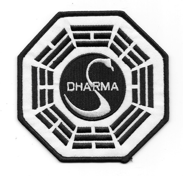 This is the white/black Swan logo of the mysterious Dharma project that appears on all of the food items and elsewhere, as seen on the hit ABC TV show LOST. This is a mint, never worn embroidered patch, measuring 4″ high. It has a glue backing for easy application to any cloth surface and has been stored in a smoke and pet free environment.