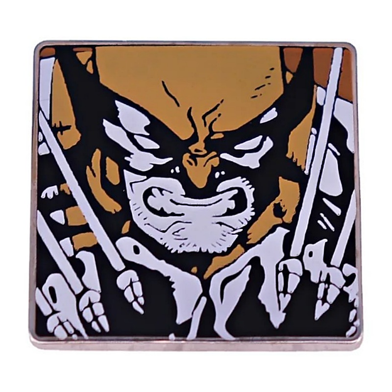 This is a 1.25″ wide x 1.25″ high enamel metal pin featuring the image of an angry Wolverine with his claws out from Marvel Comics X-Men as seen in the comics and the movies. This is a new and unused pin stored in a smoke and pet free environment.