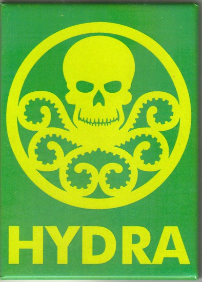 Produced in 2011, this is a licensed 2.5″ x 3.5″ magnet featuring the familiar logo of the evil Hydra organization as seen in the recent Captain America movie and in the comics. This is a new, unused magnet. It has been stored in a smoke and pet free environment