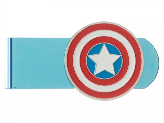 Produced by Bio World in 2014 is this 2.75″ long metal money clip with a 1.5″ wide shield logo of Marvel Comics Superhero Captain America.