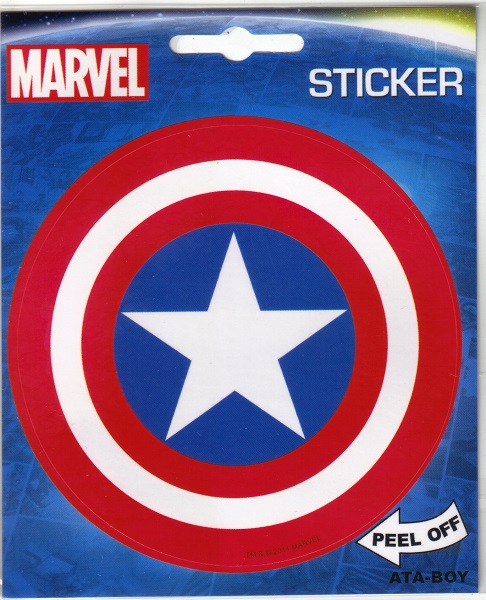 Produced in 2013 by Ata-Boy, this is a peel off vinyl sticker that features the image of the Captain America shield logo as seen in Marvel Comics and in the movies. Each card measures 4.5″ x 5.5″ with the actual decal measuring around 4” x 4”. This is a new, unused item that has been stored in a smoke and pet free environment.